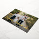 Festive Hanukkah holiday photo card features your favourite horizontal or landscape orientated photo in full bleed, with "Happy Hanukkah" overlaid in gold foil hand lettered brush typography. Personalise the front of the card with your names and the year.