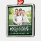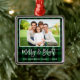 Modern Brush Script Green Plaid Merry and Bright Family Photo Ornament