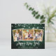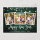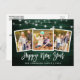 Rustic Green Wood Brush Script 3 Photo Family Happy New Year Postcard with String Lights