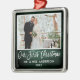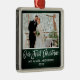 Modern Brush Script, Rustic Green Wood Our First Christmas Wedding Photo Ornament