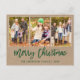 Modern Brush Script Kraft 3 Photo Family Photo Merry Christmas Holiday Postcard