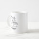 White mug featuring stylish black brush script of the quote "though she be but little she is fierce" from A Midsummer Night's Dream by William Shakespeare.
