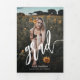 Graduation invitation features 6 photo (3 vertical and 3 horizontal) and a beautiful brush script. Inside personalise your announcement graduation message or write a party invitation.