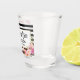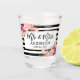 Modern Brush Script, Watercolor Pink Blush Floral with Black and White Stripes Mr. and Mrs. Wedding Shot Glass