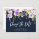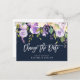 purple and cream watercolor flowers and white script font in front. You can edit the text and colours.