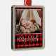 Modern Brush Script Red Plaid Merry and Bright Baby Photo Ornament