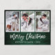 Rustic Green Wood Brush Script 3 Photo Merry Christmas Card