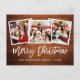 Rustic Wood Brush Script 3 Photo Family Merry Christmas Postcard
