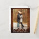 Modern Brush Script, Rustic Wood Save The Date Engagement Couple Photo Postcard