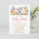 Brush Script Safari Animals Pink Bow Baby Shower Invitation