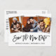 Modern Brush Script Save The New Date Wedding Postponed New Date Announcement Couple 3 Photo Postcard