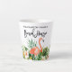 Modern Brush Script, Watercolor Tropical Coral Floral, Flamingo, Family Name Beach House Latte Coffee Mug