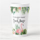 Modern Brush Script, Watercolor Tropical Floral, Pink Flamingo, Family Name Beach House Latte Coffee Mug