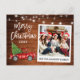 Modern Brush Script, Watercolor Vintage Red Truck with Christmas Tree, Instant Camera Style Photo Merry Christmas Postcard - Rustic Wood and String Lights