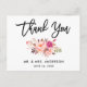 Modern Brush Script Watercolor Pink Blush Floral Wedding Thank You Postcard