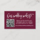 Modern Brush Script. Minimalist Simple Wedding Website Enclosure Card with your QR Code. Burgundy. Photo Back.