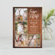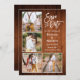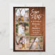 Modern Brush Script 4 Photo Couple Engagement Announcement Save The Date Card - Rustic Country Wood