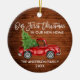 Modern Brush Script Our First Christmas in our New Home Ornament includes Watercolor Vintage Red Truck with Christmas Tree. Rustic Country Wood Print.