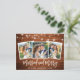 Rustic Wood Brush Script 3 Photo Wedding Married and Merry Christmas Postcard with String Lights