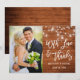 Modern Brush Script, Rustic Wood and String Lights with Mason Jars, With Love and Thanks Wedding Photo Thank You Card
