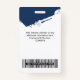 Easily personalise this Custom Brush Stroke Employee Name Badge with Photo, Scan Bar Code and business logo. A creative business design in navy blue and white colours with employee photo into brush stroke shape, fully customisable, in front and back sizes, sans-serif basic and modern fonts and a creative, eyecatching and clear look. Avaiable with lanyard, metal clip or with retractable. No minimum order.