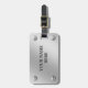 A customisable luggage tag with a brushed aluminium effect and screws.