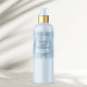 This elegant product label for cosmetic bottles features a faux brushed blue foil metal background. This label contains space for your product name, business name, product weight, ingredients, instructions, social media, and business address.