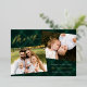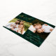 Elegant holiday photo card featuring "Merry" in a gold foil calligraphy script on a painted green plaid background. Personalise the front by adding two of your favourite photos, a greeting, name, and year. The rustic gold foil Christmas card reverses to display an additional photo with a snowy green plaid background.