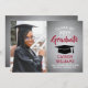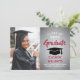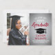 Announce a high school or college graduation and invite family and friends to celebrate with custom photo red, grey and white party invitations. The picture and wording are simple to personalise and the colours are easy to change with the Zazzle design tool. This template is set up as a combination announcement card and party invitation that can be customised with any details of your choice, such as parents' names, special honours, degree title, favourite inspirational quote, graduate's future plans or new address. The design features a faux brushed metallic background, a mortar board cap, elegant modern calligraphy, classic vintage typography and one favourite photo, such as a senior picture or an image from the commencement ceremony. Please note that silver is printed grey ombre colour, not metallic foil. This graduation card is a stylish way to announce a special day celebration. Congratulations to the graduate!
