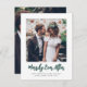 Brushed Merrily Ever After Newlyweds 2 Photo Green Holiday Card