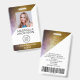 This modern name badge design can be customised with your business name, logo and contact details as well as an employee photo and barcode.