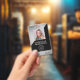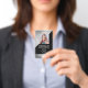 This modern name badge design can be customised with your business name, logo and contact details as well as an employee photo and barcode.