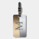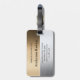 Brushed metal luggage tag in silver grey and copper with a modern design