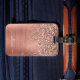 Brushed Metal Rose Gold Pink Glitter Monogram Luggage Tag
