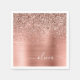 Brushed Metal Rose Gold Pink Glitter Monogram Napkin