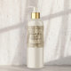 This elegant product label for cosmetic bottles features a faux brushed pearl foil metal background. This label contains space for your product name, business name, product weight, ingredients, instructions, social media, and business address.