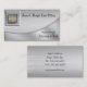 Elegant brushed Platinum Law Offices or Attorney at Law business card - top left has a glassy square with scales of justice