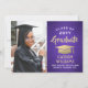 Brushed Purple and Gold Modern Graduation Photo Invitation