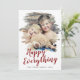 This brushed red happy everything year in review holiday card is the perfect simple holiday greeting. The unique and artistic design features your photo in watercolor painted brush strokes with modern calligraphy in red and white. Personalize the card with 5 family photos, your family name, first names, and year. Include a year in review or family newsletter on the back of the card.