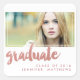 Elegant modern photo graduation sticker perfect for decoration of favours at your daughter's graduation party. Design by Elke Clarke © A simple rose gold foil typography handwritten bold script font (printed photo effect) with the word "graduate" with a photo frame design. Replace sample photo with your own. White and pink rose gold colours. Other styles and colours available.
