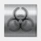 The biohazard symbol in realistic faux finish, cut-out, layered, brushed steel texture.