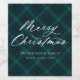 Elegant and rustic wine labels featuring "Merry Christmas" in white calligraphy script on a painted teal plaid background. Personalise the plaid holiday wine labels by adding your name and year. The plaid wine labels are perfect for hostess gifts and holiday parties.