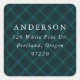 Add a personalised touch to your holiday envelopes with our Brushed Plaid holiday return address labels. The design features your name and address displayed in white lettering with a painted teal plaid background.