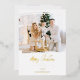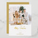 Brushstroke Christmas Golden Effect Custom Photo Metallic Foil Holiday Card with Envelope.