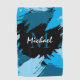 Brushstrokes shades of blue name with monogram.