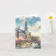 This greeting card features a watercolor portrait of the Grand Palace of Belgium in Brussels.