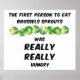 The first person to eat brussels sprouts was REALLY, REALLY hungry text with a row of brussels sprouts is a humourous gift design for those who find the green vegetable morsels less than tasty.