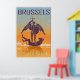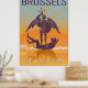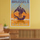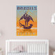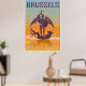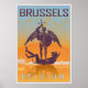 Brussels vintage poster in orange and blue textured background with skyiline in white