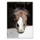 A brown and white horse with a black mane looking at you from inside of a barn. This loveable and friendly equine is sure to put a smile on the face of the horse lover in your life. Cover is void of text. Blank inside and ready for your personal touch.