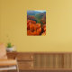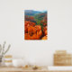 Bryce canyon Utah poster FROM 8.99 . Bryce canyon is not a canyon but a giant natural amphitheatre created by erosion along the eastern side of the Paunsaugunt Plateau. Words confound when no comparable exist. A cave without a ceiling? A forest of stone? Even 'canyon' is misleading since Bryce is carved by freeze-thaw cycles, not a river. Yet, 'world's largest pothole' is neither adequate nor flattering. Bryce is distinctive due to geological structures called hoodoos, formed by wind, water, and ice erosion of the river and lake bed sedimentary rocks. The red, orange, and white colours of the rocks provide spectacular views for park visitors. Bryce sits at a much higher elevation than nearby Zion National Park. Spectacular at any time of year this wonder of the world will add majesty and depth to any room